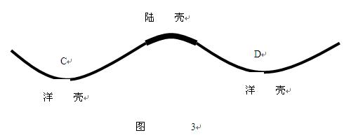 冰輒理論認(rèn)為:大洋地殼中心沉降的過程中,不僅表現(xiàn)為對于板塊交界地帶的撕裂同時洋殼的中心部位C、D區(qū)域也會出現(xiàn)倒V字形的斷裂如圖3所示,當(dāng)然在于大洋的中心初期形成地殼斷裂的短時期內(nèi)火山就會迅猛爆發(fā),所以我們所能見到的只能是大洋的中脊,實(shí)質(zhì)上大洋地殼的底層是一個倒V字形的大斷裂,這也是大洋中脊火山頻繁爆發(fā)的主要原因。